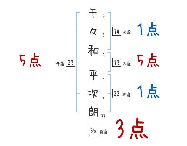千々和平次朗さんの画数の鑑定結果