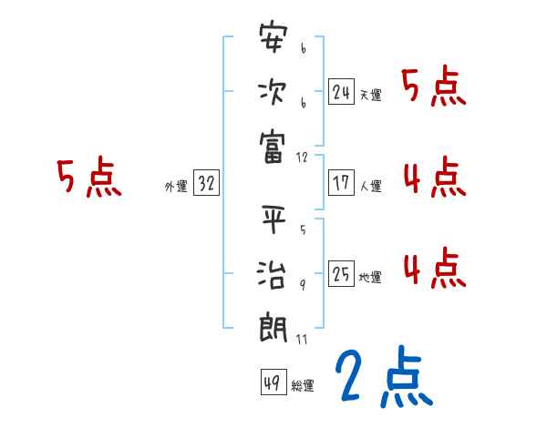 安次富平治朗さんの画数の鑑定結果