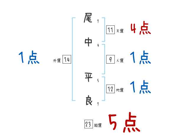 尾中平良さんの画数の鑑定結果