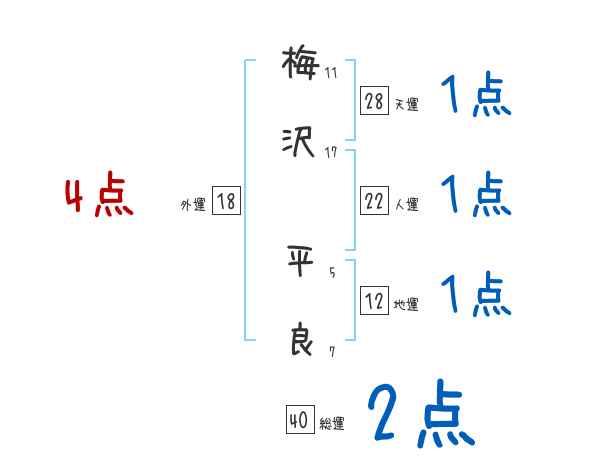梅沢平良さんの画数の鑑定結果