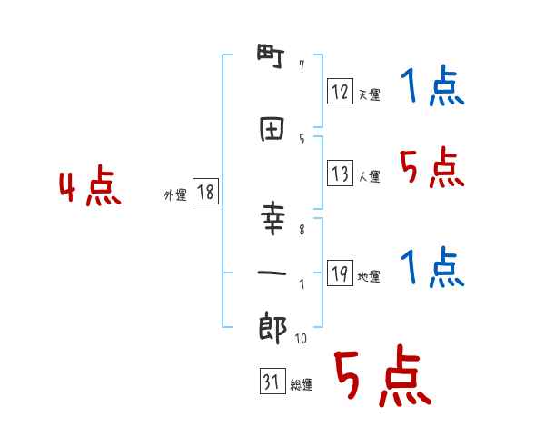 総運![]() | 町田幸一郎さんの総運は31画の5つ星!社交性があり判断力に優れる。順風満帆な人生で円満な生活。 あなたの人生を表す1番重要な運勢です。生涯を通じて影響する総合運となり、主に50歳以降の晩年期に影響を及ぼします。 |