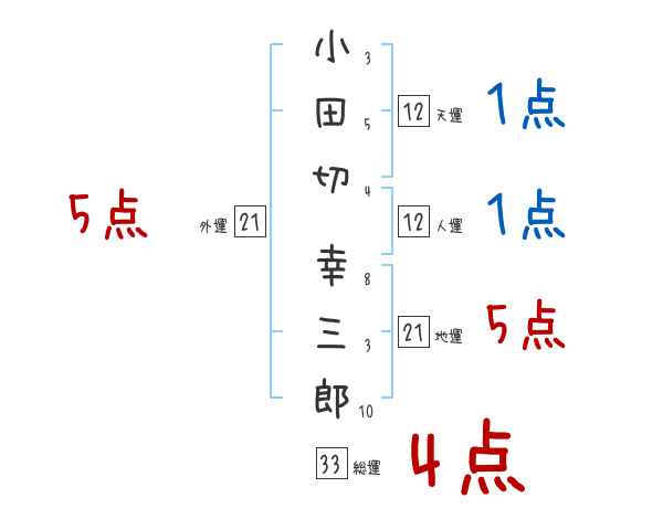 外運![]() | 小田切幸三郎さんの外運は21画の5つ星!統率力がある。独立し成功する。名誉を手に入れる。 生活面を象徴する運勢です。外部から受ける影響力を表し、結婚運、家庭運や職場、環境への順応性を表します。 |