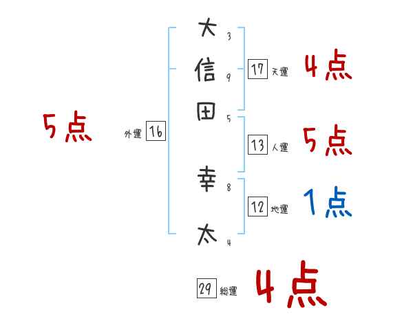 大信田幸太さんの画数の鑑定結果