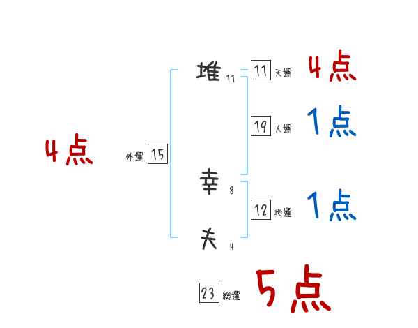 堆幸夫さんの画数の鑑定結果