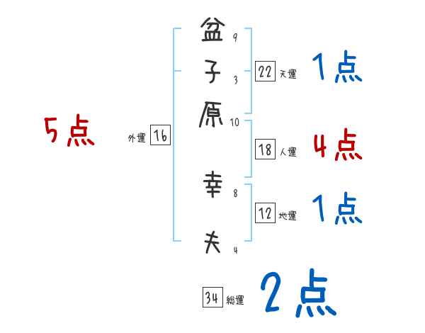 外運![]() | 盆子原幸夫さんの外運は16画の5つ星!人望が厚く大きく発展する。逆転成功が見える。 生活面を象徴する運勢です。外部から受ける影響力を表し、結婚運、家庭運や職場、環境への順応性を表します。 |