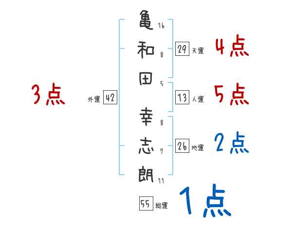 亀和田幸志朗さんの画数の鑑定結果