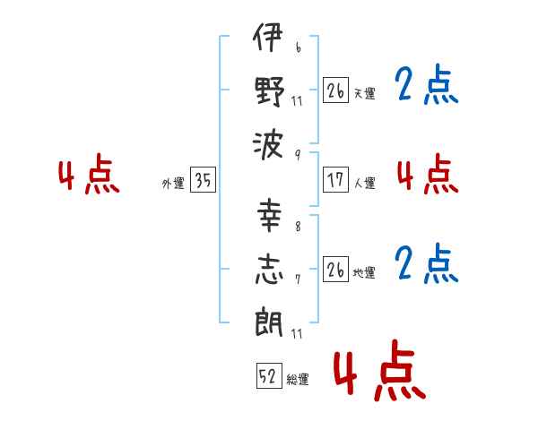 伊野波幸志朗さんの画数の鑑定結果
