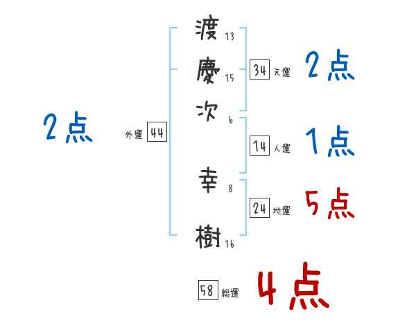 渡慶次幸樹さんの画数の鑑定結果