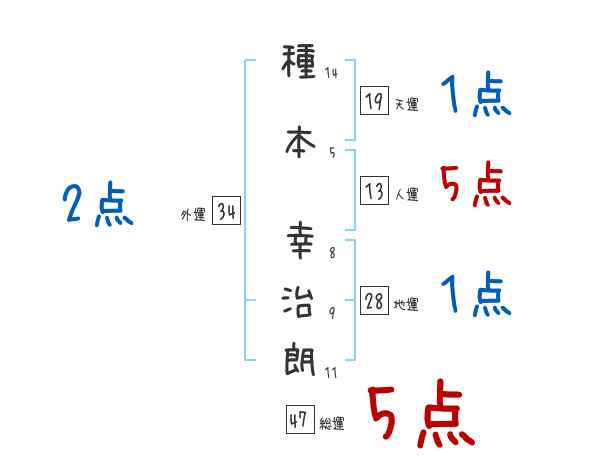 種本幸治朗さんの画数の鑑定結果