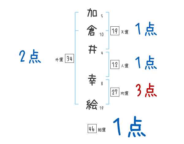 総運![]() | 加倉井幸絵さんの総運は46画の1つ星!迷走することが多く苦労するかも。目先のことにとらわれないように。 あなたの人生を表す1番重要な運勢です。生涯を通じて影響する総合運となり、主に50歳以降の晩年期に影響を及ぼします。 |