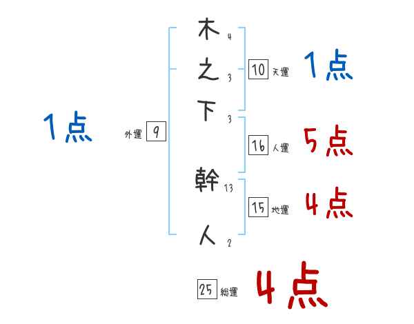 木之下幹人さんの画数の鑑定結果