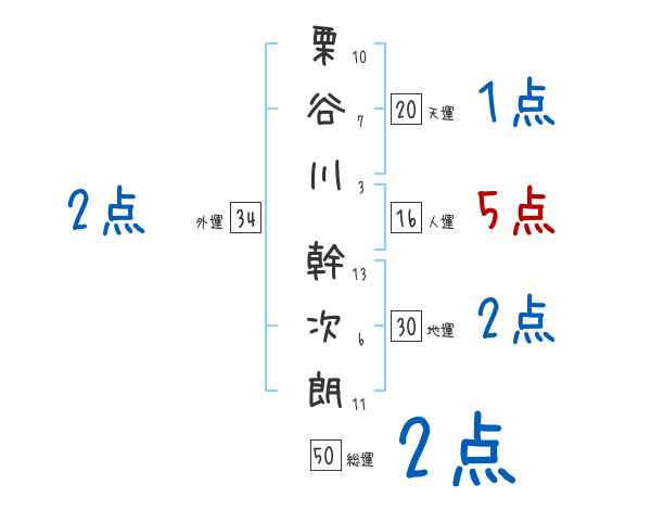 栗谷川幹次朗さんの画数の鑑定結果