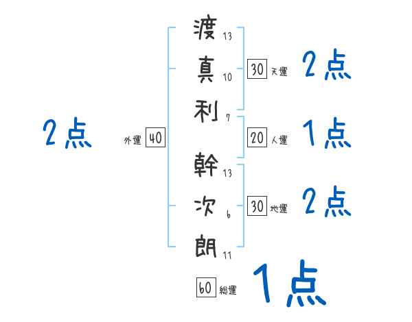 渡真利幹次朗さんの画数の鑑定結果