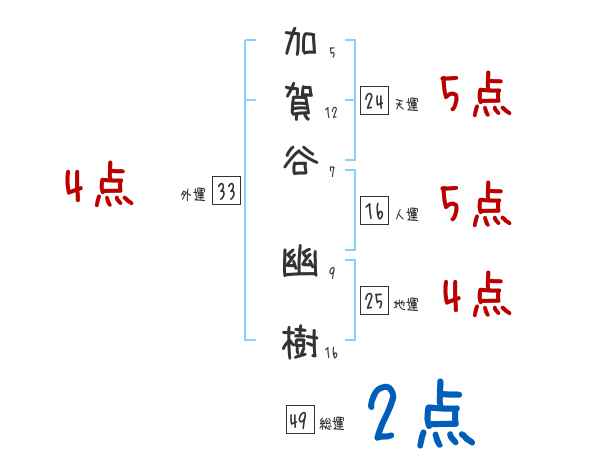 加賀谷幽樹さんの画数の鑑定結果