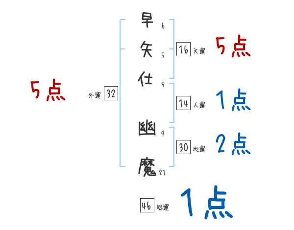 早矢仕幽魔さんの画数の鑑定結果