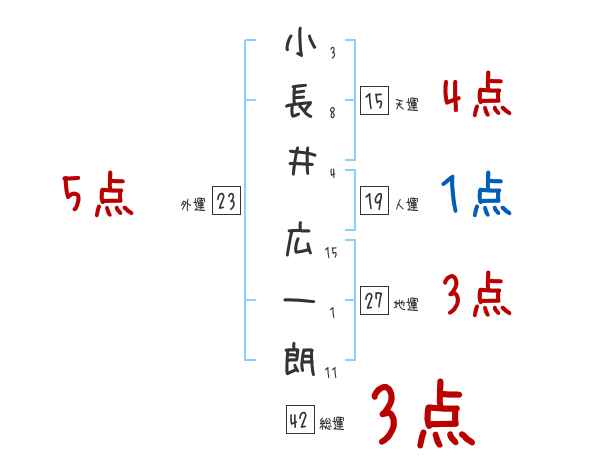 外運![]() | 小長井広一朗さんの外運は23画の5つ星!想像力に優れ活力がある。一代で成功し名誉を手に入れる。 生活面を象徴する運勢です。外部から受ける影響力を表し、結婚運、家庭運や職場、環境への順応性を表します。 |