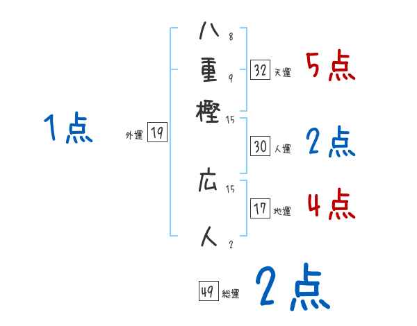 総運![]() | 八重樫広人さんの総運は49画の2つ星!不安定な性格で明暗がある人生。周りの人には支援されやすい。 あなたの人生を表す1番重要な運勢です。生涯を通じて影響する総合運となり、主に50歳以降の晩年期に影響を及ぼします。 |