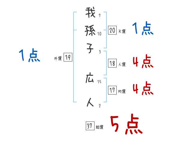 外運![]() | 我孫子広人さんの外運は19画の1つ星!優れた才能を持ちますが、協調性が足りないことも。周りの人と協力する事を意識しましょう。 生活面を象徴する運勢です。外部から受ける影響力を表し、結婚運、家庭運や職場、環境への順応性を表します。 |