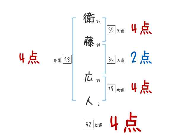 衛藤広人さんの画数の鑑定結果