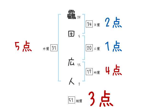 靏田広人さんの画数の鑑定結果