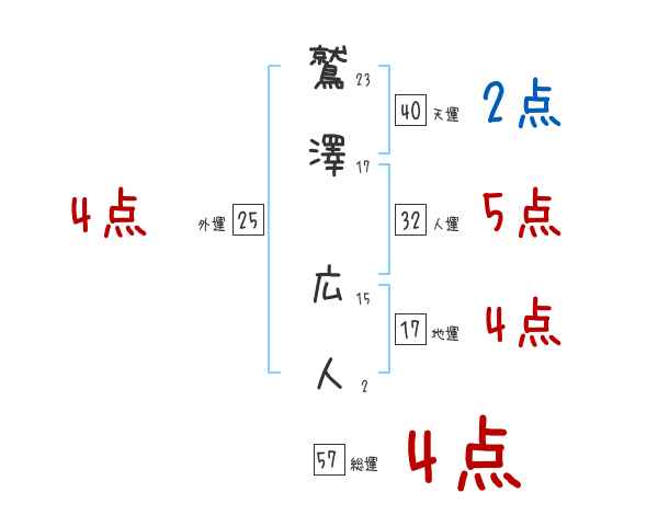 鷲澤広人さんの画数の鑑定結果