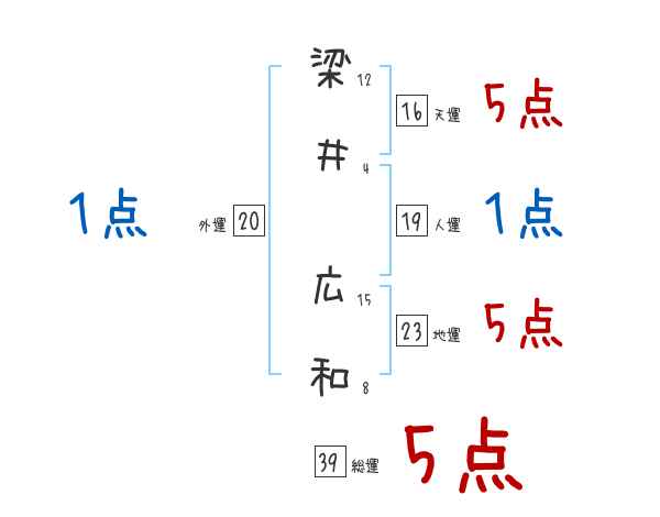梁井広和さんの画数の鑑定結果