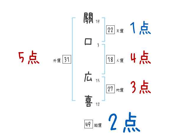 關口広喜さんの画数の鑑定結果