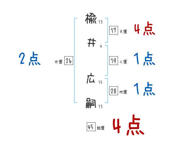 楡井広嗣さんの画数の鑑定結果