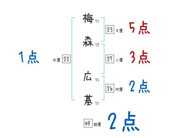 梅森広基さんの画数の鑑定結果
