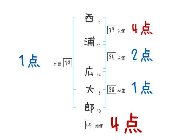 西浦広大郎さんの画数の鑑定結果