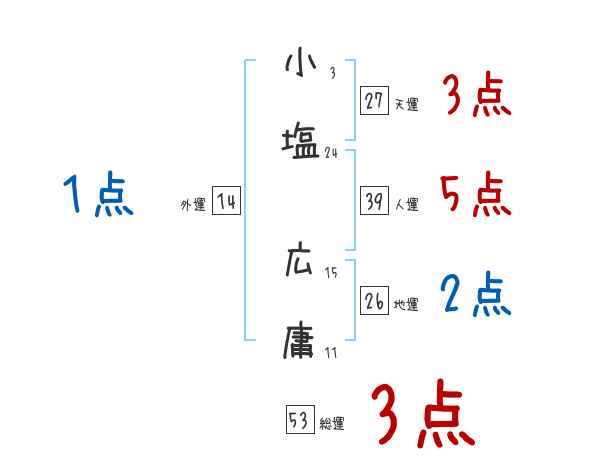 小塩広庸さんの画数の鑑定結果