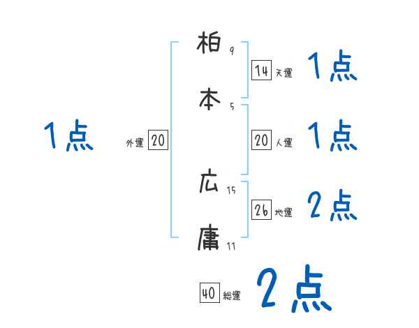 柏本広庸さんの画数の鑑定結果