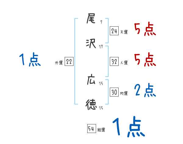 尾沢広徳さんの画数の鑑定結果