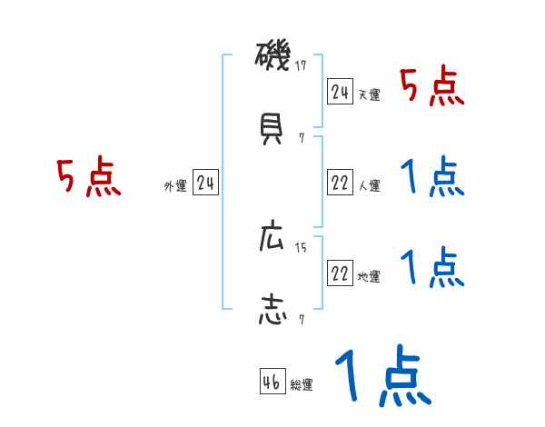 磯貝広志さんの画数の鑑定結果