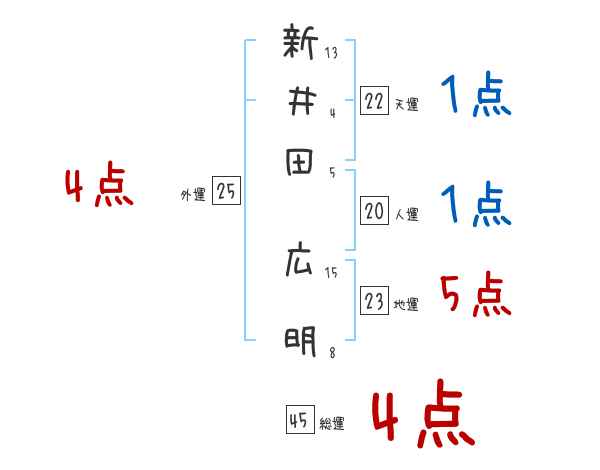 新井田広明さんの画数の鑑定結果