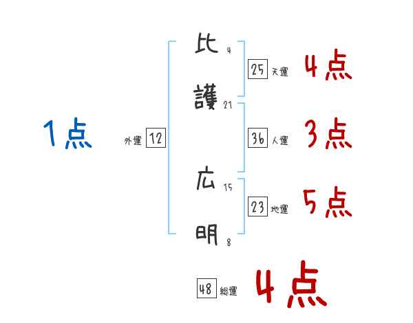 比護広明さんの画数の鑑定結果