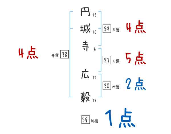 天運![]() | 円城寺広毅さんの天運は29画の4つ星!完全主義で才能がある。厳格な心の持ち主。 家系が持つ宿命的な運勢を表します。祖先から受け継いだ苗字ですので自分の力が及びません。家柄を象徴します。 |