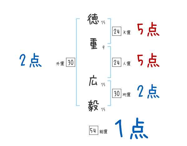 徳重広毅さんの画数の鑑定結果
