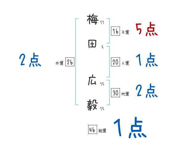 梅田広毅さんの画数の鑑定結果