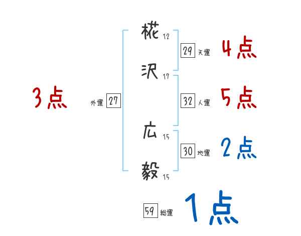 椛沢広毅さんの画数の鑑定結果