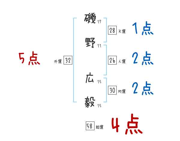 磯野広毅さんの画数の鑑定結果