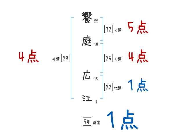 饗庭広江さんの画数の鑑定結果