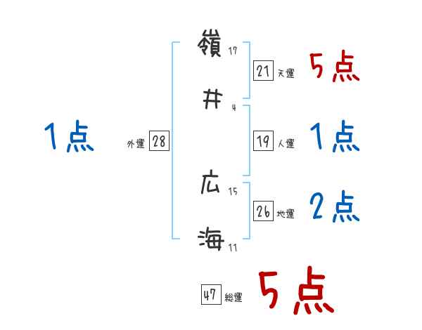 嶺井広海さんの画数の鑑定結果