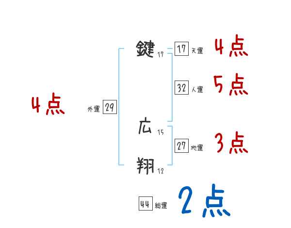 鍵広翔さんの画数の鑑定結果