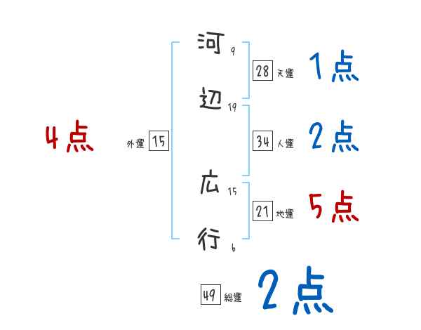 河辺広行さんの画数の鑑定結果
