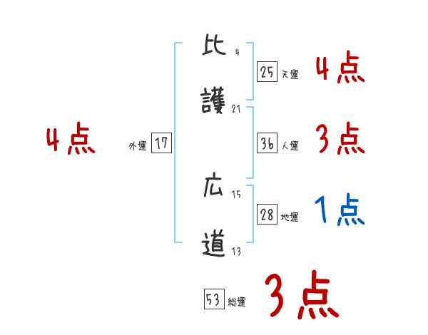 比護広道さんの画数の鑑定結果