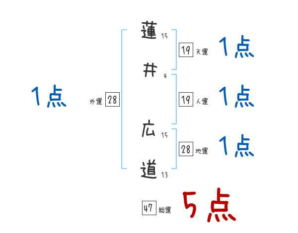 天運![]() | 蓮井広道さんの天運は19画の1つ星!優れた才能を持ちますが、協調性が足りないことも。周りの人と協力する事を意識しましょう。 家系が持つ宿命的な運勢を表します。祖先から受け継いだ苗字ですので自分の力が及びません。家柄を象徴します。 |