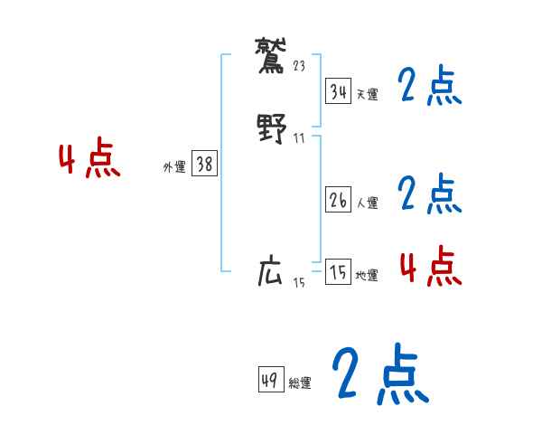鷲野広さんの画数の鑑定結果