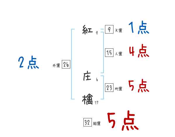 総運![]() | 紅庄檎さんの総運は32画の5つ星!柔軟性があり成功する。チャンスが多く金運が良い。 あなたの人生を表す1番重要な運勢です。生涯を通じて影響する総合運となり、主に50歳以降の晩年期に影響を及ぼします。 |
