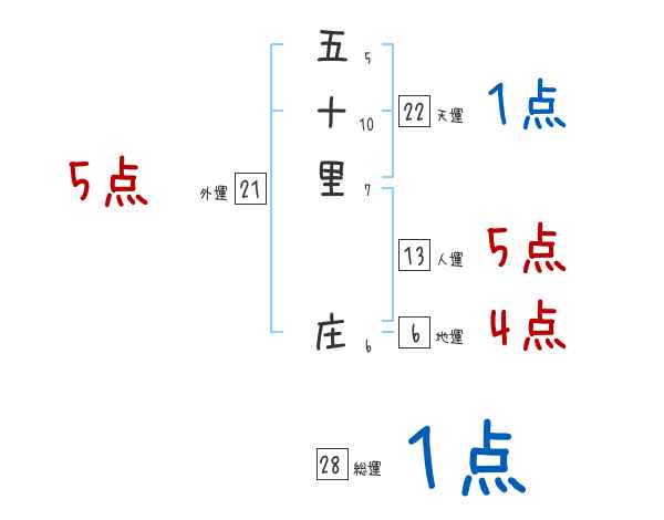 天運![]() | 五十里庄さんの天運は22画の1つ星!努力することが苦手ないっぽう手先が器用。芸術性にも優れる。 家系が持つ宿命的な運勢を表します。祖先から受け継いだ苗字ですので自分の力が及びません。家柄を象徴します。 |